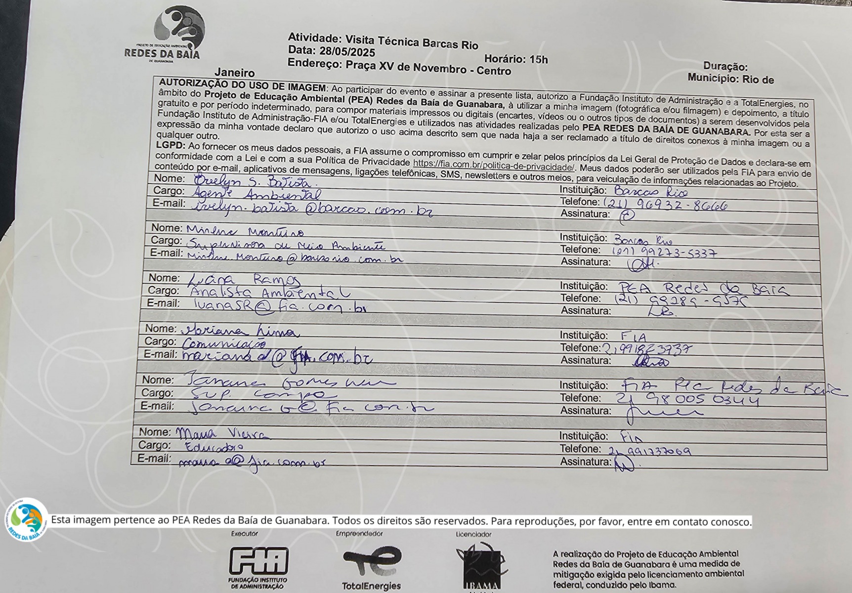 A REALIZAÇÃO DO PROJETO DE EDUCAÇÃO AMBIENTAL REDES DA BAÍA DE GUANABARA É UMA